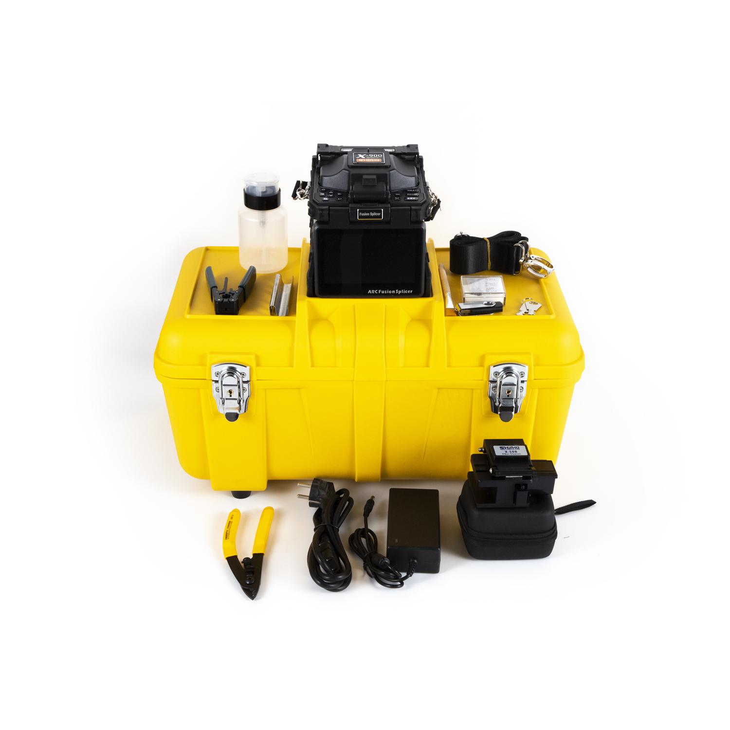 X-915 Fiber fusion splice rเป็นเครื่องต่อเชือกฟิวชั่น 6 มอเตอร์พร้อมเทคโนโลยีการจัดตำแหน่งแกนไฟเบอร์ล่าสุด มีประสิทธิภาพการทำงานที่เสถียรมากและการสูญเสียฟิวชันต่ำ เหมาะสำหรับโครงการไฟเบอร์ออปติกต่างๆ รวมถึงแกนหลัก FTTx เป็นต้น